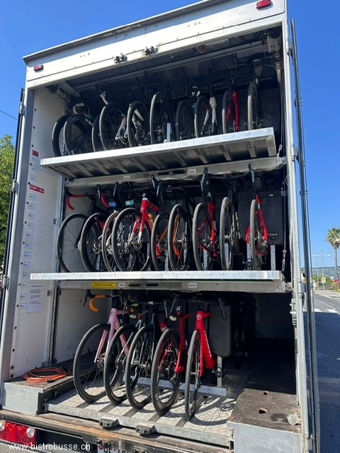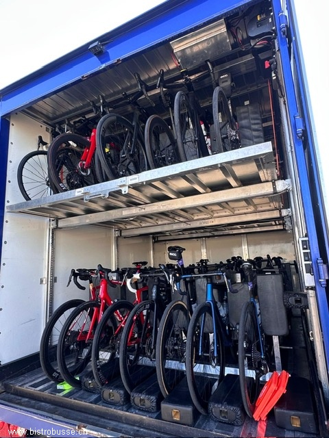 Transport bis 50 Fahrräder Stehender Transport des Fahrrades mittels Kissenpolsterung